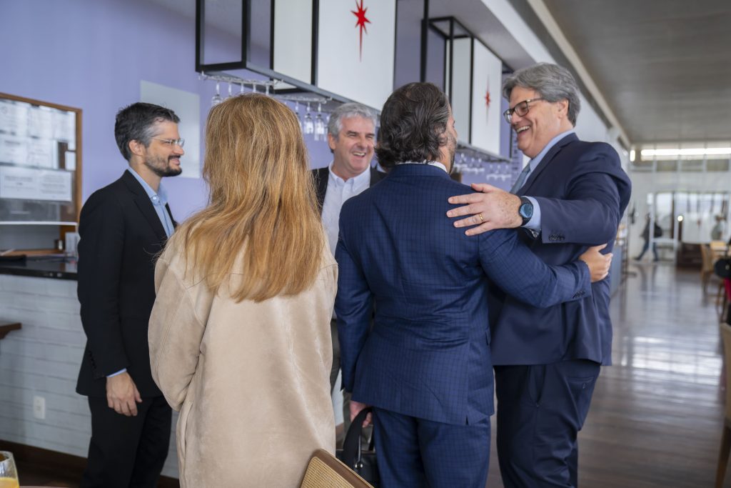 O Café de Negócios contou com a presença de: Wander Brugnara (CEO do Grupo Brugnara), Dr. Magnuns Brugnara (COO do Grupo Bugnara), Renata Delrio (Sócia Diretora do Grupo Bugnara) e Luiz Leão (Presidente do instituto Coalizão Rio).